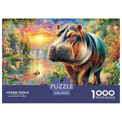 Hippo in Garden 1000 Pc Hippo Vibrant Savanna Landscapeplastic Jigsaw Puzzle Durable Premium Precision Cut Non-glare Smooth Finish Sturdy Lightweight 70x50cm/1000pcs