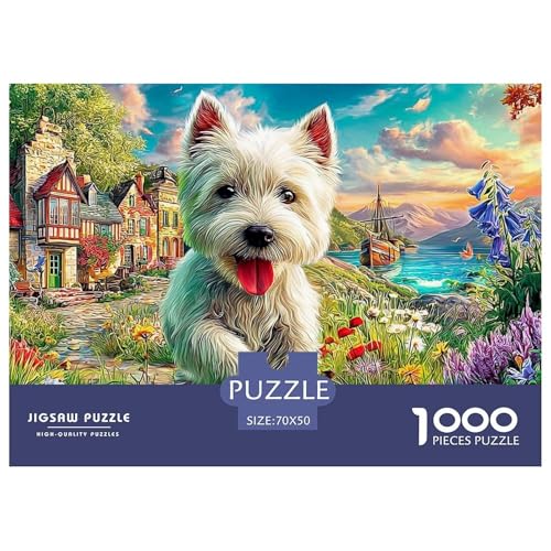 Westie in Village 1,000 Pieces Dog Cheerful Vibrant Garden Portraitplastic Puzzle Non-glare Sustainable Fit Perfectly Eco-friendly Smooth Finish Stress Relief 70x50cm/1000pcs