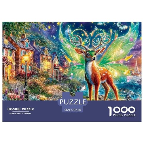 Christmas Fawn 1000 Pc Deer Magical Forest Vibrant Art1000 Piece Plastic Jigsaw Puzzle Gift Birthday Gift for Grandparents Eco-friendly Non-glare 70x50cm/1000pcs