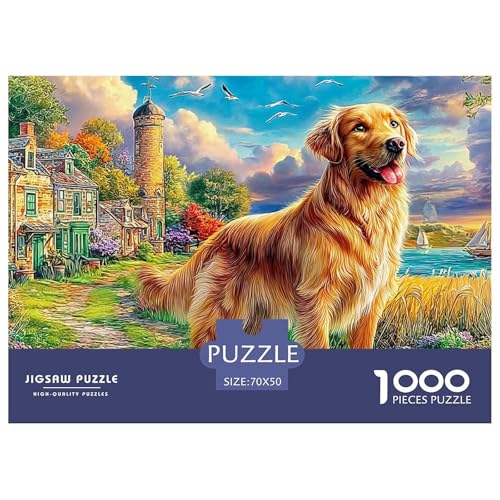 Sunset Puppy 1000 Pc Dog Cheerful Vibrant Portrait1000 Piece Plastic Jigsaw Puzzle for Kids Eco-friendly Non-glare Educational Toy Kids 70x50cm/1000pcs