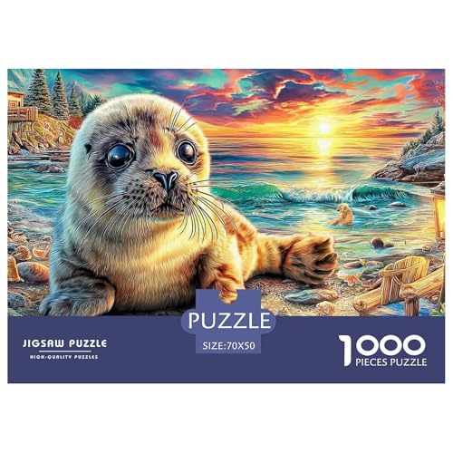 Seal Sunset 1000 Pc Seal Sunset Coastal Portrait1000 Piece Plastic Jigsaw Puzzle Gift Birthday Gift for Grandparents Eco-friendly Non-glare 70x50cm/1000pcs