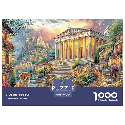 Ancient Cityscape with Dog 1000 Pieces Ancient Greek Temple Coastal Viewplastic Puzzle for Adults Precision Cut Non-glare Smooth Finish Stress Relief Mindfulness 70x50cm/1000pcs