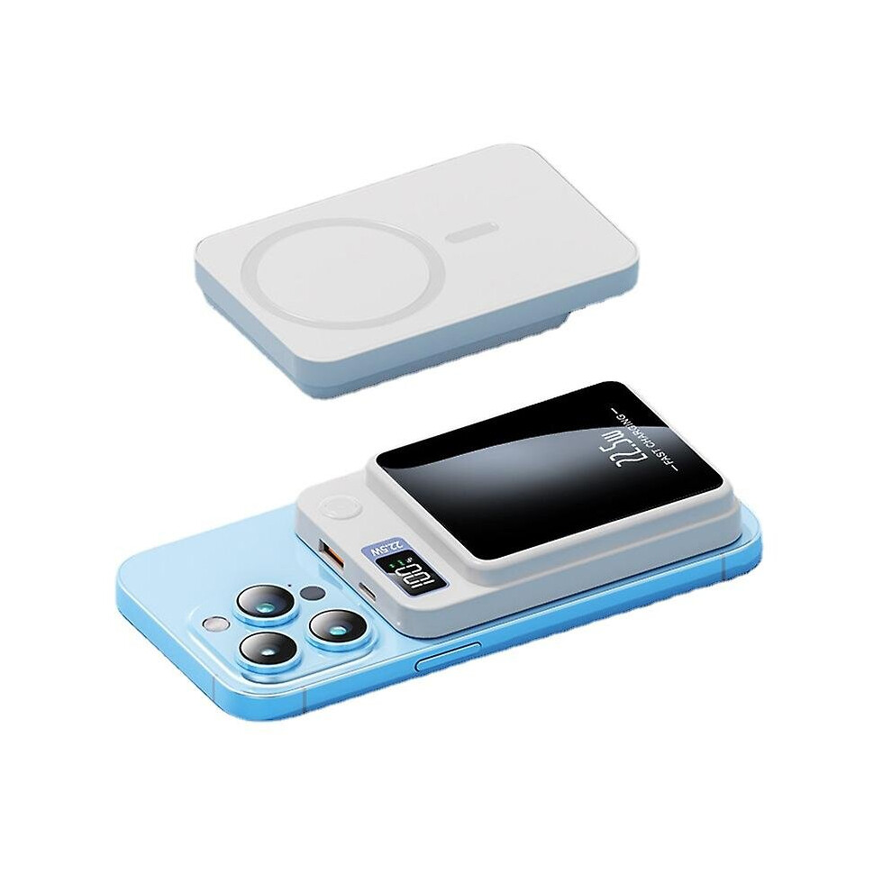 (White) 5000mah Mini Magnetic Wireless Fast Charging Power Bank Portable Powerbank Pocket