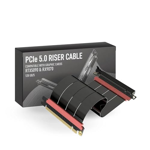 Luocute PCI E 5.0 Riser Cable, 16X Riser Cable Fit for WRX80 90E RTX4090 5090 RX8900 RX7900XTX GPU 128GB/s Gen 5 GPU Graphics Card Extension Tool, Computer Internal Components (20cm)