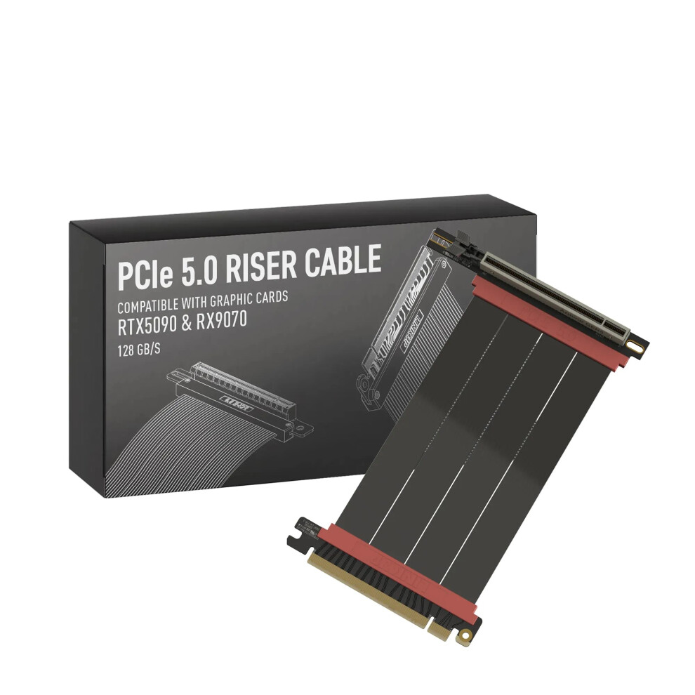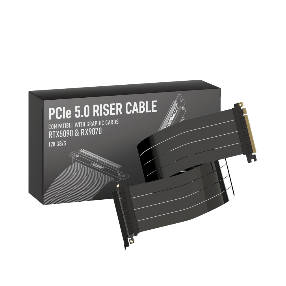 Luocute PCI E 5.0 Riser Cable, 16X Riser Cable Fit for WRX80 90E RTX4090 5090 RX8900 RX7900 GPU 128GB/s Gen 5 GPU Graphics Card Extension Tool, Computer Internal Components (30cm)