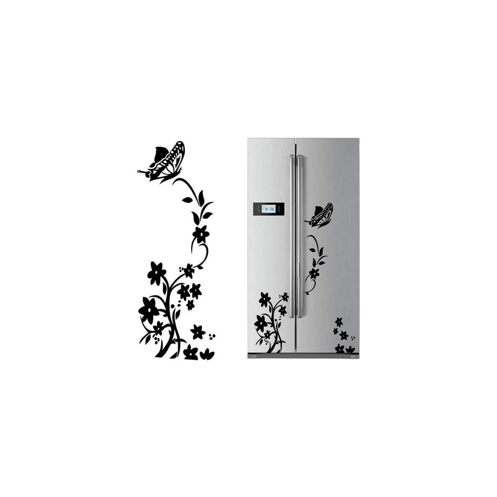 2pcs Black Flower Vine Wall Stickers PVC Fridge Butterfly Self-adhesive Removable Murals Art Decor for Home Kitchen Cupboard - 140 * 50cm