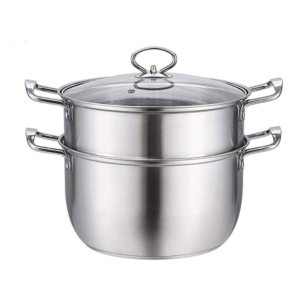 Stainless Steel Steamer Pot 2 Layer Large Capacity with Lid for Gas and Induction Cooker