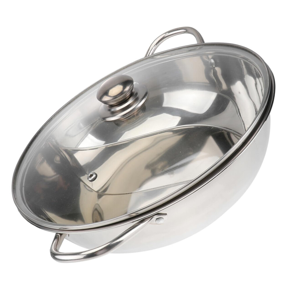 Stainless Steel Divided Hot Pot Cooker 34cm With Lid Two-Flavor Soup Pot For Induction Cooktops And Gas Stoves