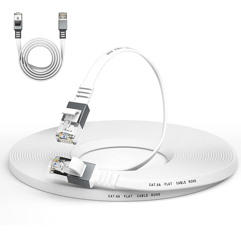 Cat 6a Ethernet Cable 50 Ft,Durable Flat Internet Network LAN Cable with 1.5Ft Short Patch Cord, Slim High Speed