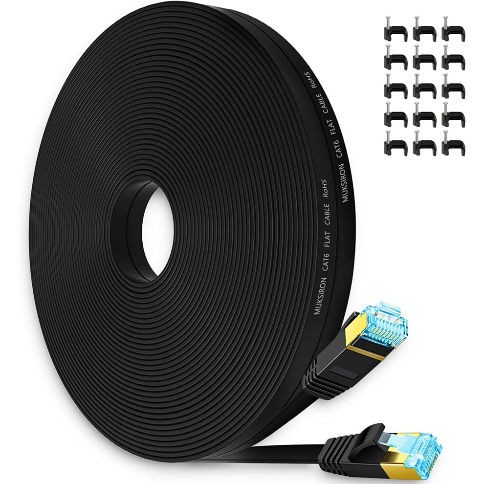 Cat6 Ethernet Cable 50 ft,Flat Internet Network LAN Patch Cords ââ Solid Cat 6 High Speed Computer Wire with Clips&