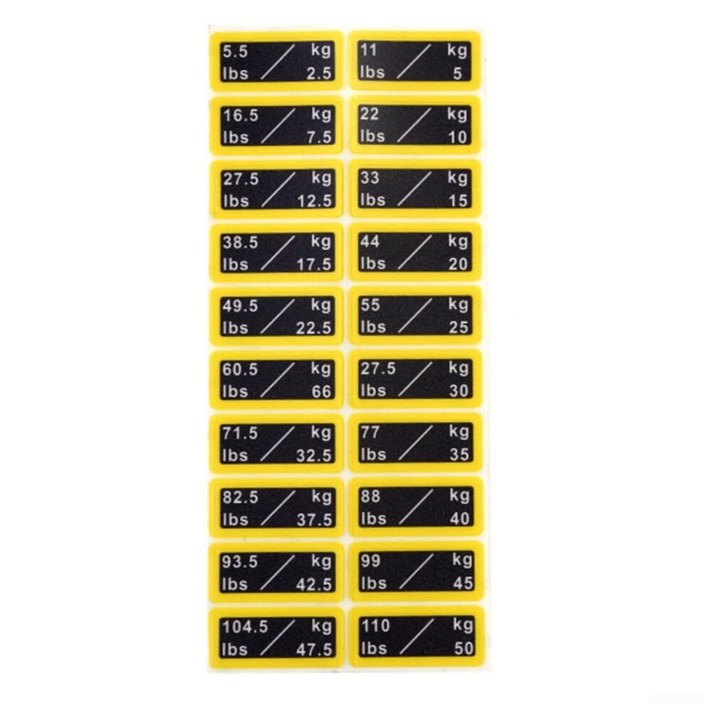 Zerodeko Weight Stack Labels Stickers for Gym Equipment Self-Adhesive Small Weight Capacity Labels 2.5-50Kg with 2.5Kg Increment Yellow Black Fitness Equipment for Dumbbells and Barbells