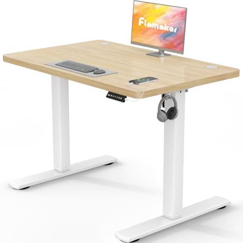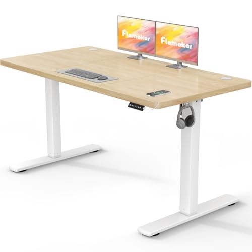 Flamaker Electric Standing Desk 100x60cm Height Adjustable 73-118cm 4-Button Memory Control & LED Display Heavy-Duty Steel Frame 50kg Weight Capacity Anti-Collision Hook & Cable Port,Beige