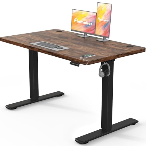 Flamaker Electric Standing Desk 120x60cm Height Adjustable 73-118cm, 6-Button Memory Control & LED Display Heavy-Duty Steel Frame 50kg Weight Capacity Anti-Collision Hook & Cable Port,Vintage Brown