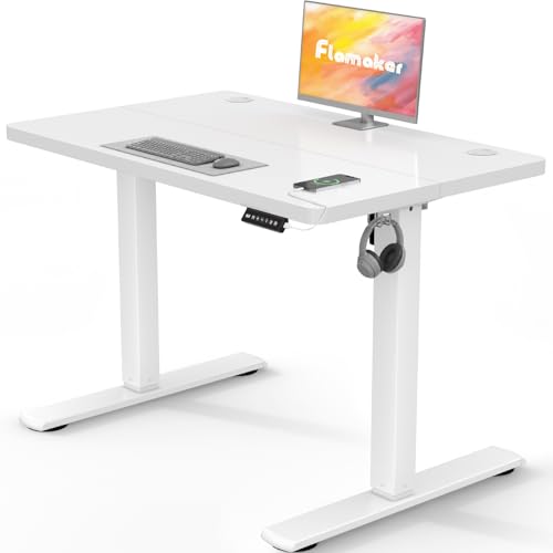 Flamaker Electric Standing Desk 100x60cm Height Adjustable 73-118cm, 6-Button Memory Control & LED Display Heavy-Duty Steel Frame 50kg Weight Capacity Anti-Collision Hook & Cable Port,White