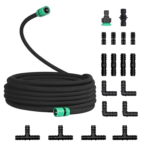 50M Drip Hose Set, Soaker Hose Set, Porous Pipe Leaky Pipe, Garden Hose for Watering, Gardens, Lawn, Patios, Black