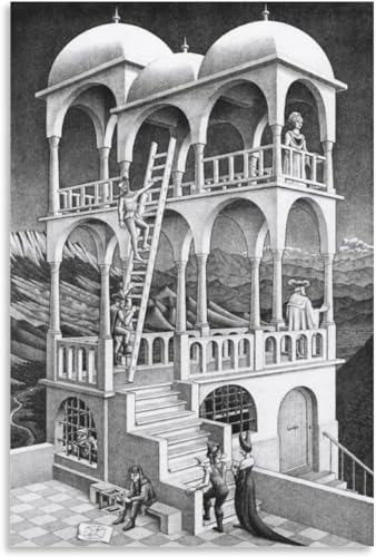 DDSEW GREWT Famous M.C. Escher Posters Belvedere Abstract Canvas Painting Modern Wall Art M.C. Escher Prints For Living Room Decor Pictures 50x70cm No Frame