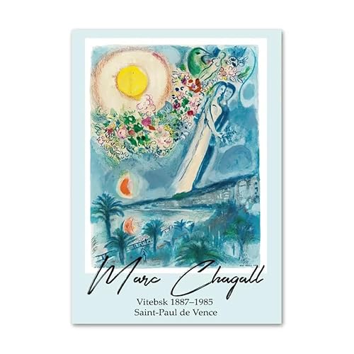 DDSEW GREWT Marc Chagall Posters Saint-Paul-de-Vence Abstract Canvas Wall Art Famous Painting Marc Chagall Prints for Home Decor Pictures 50x70cm No Frame