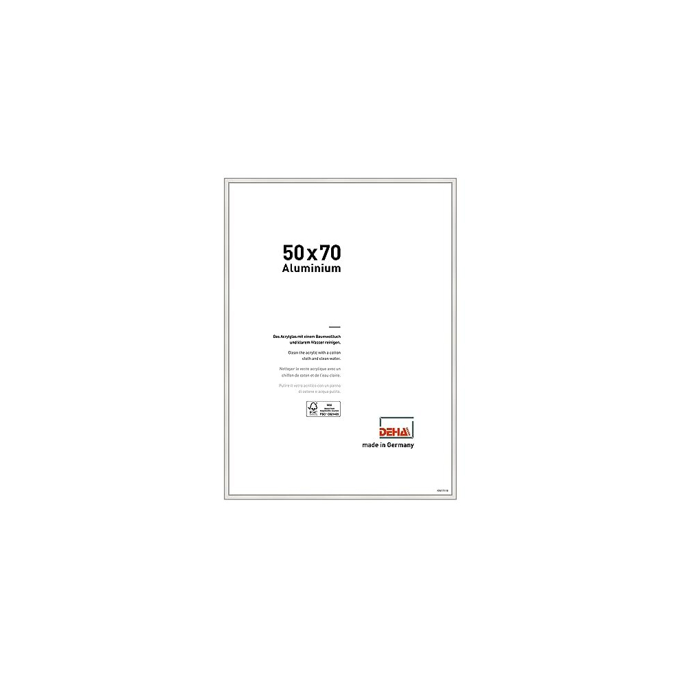Photo Frame 20x28, Aluminium Picture Frame 50x70cm with Protective Plastic Glazing and Push and Turn Clips - Boston Silver
