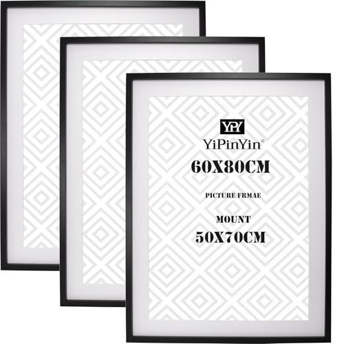 60x80cm Black Boxed Photo Frame 3Pack with Acid Free Mount for 50x70cm,80x60cm Large Poster Frame with Metal Bracket for Security, Black Poster Frame 50x70cm for Wall Hanging.