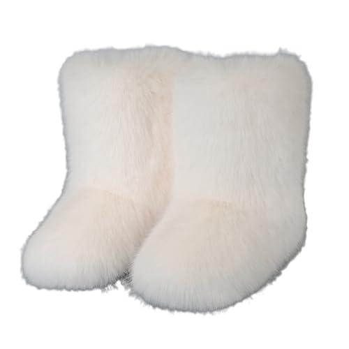 ENEN Furry Boots Womens Size 5-10, Winter Ladies Furry Knee High Snow Boots Warm Soft Plush Slip On Snow Shoes for Cold Weather Outdoor Indoor (HL17 White,10)