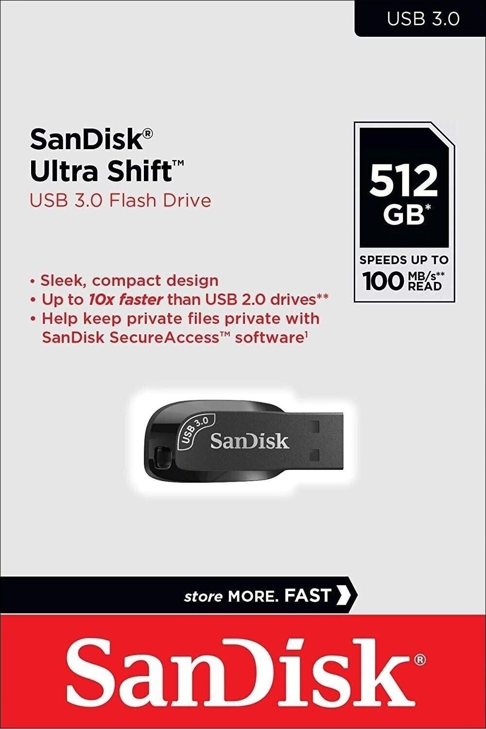 SanDisk Ultra Shift 512GB USB 3.0 Flash Drive Up to 100MBs SDCZ410-512G-G46 New