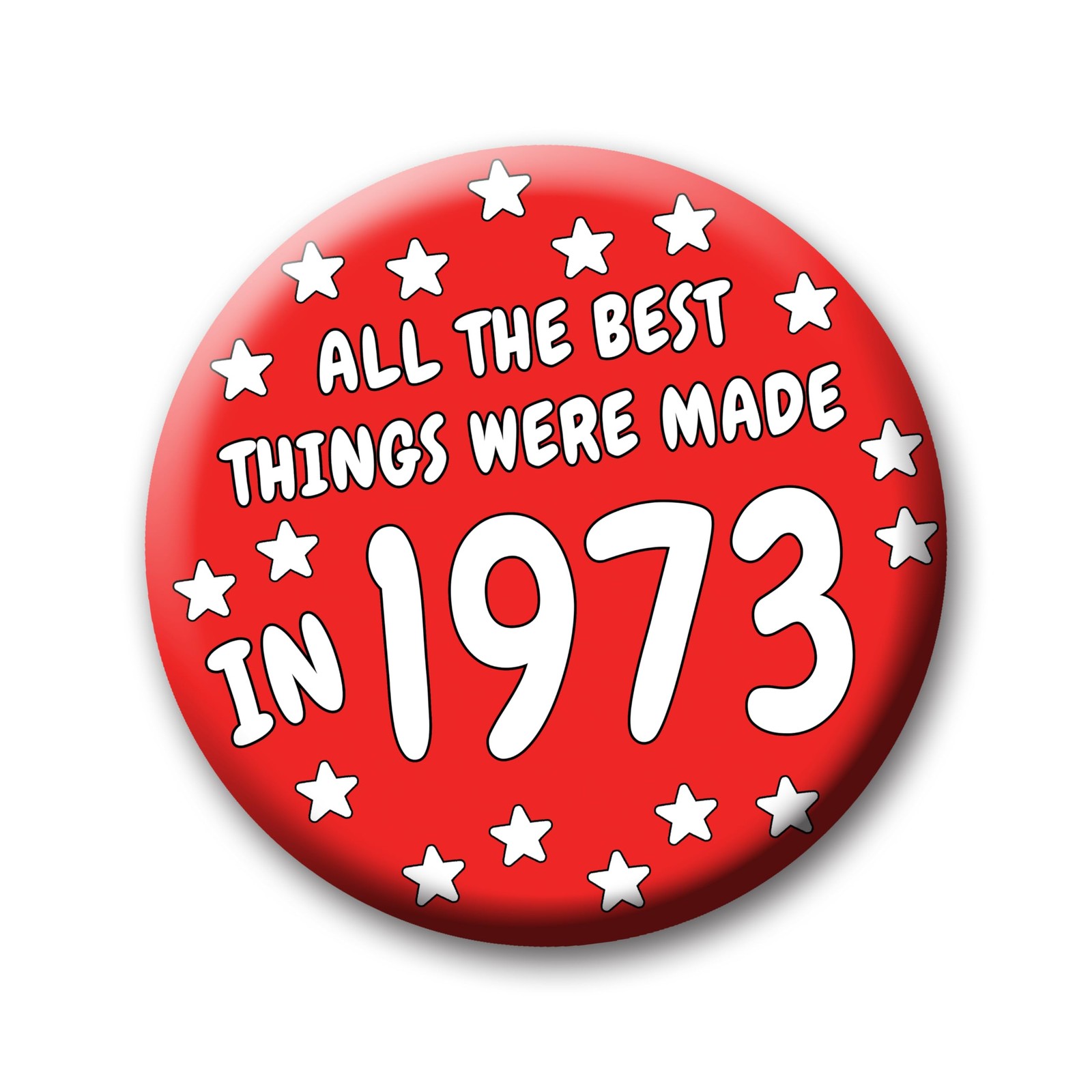 52nd Birthday Badge – 76mm All The Best Things Were Made In 1973 Pin Button
