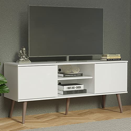 Madesa TV Stand Console with 2 Doors and 2 Shelves with Cable Management for 50, 55 Inch Media Storage Media Console Office Entertainment Center Wooden Television Cabinet - White