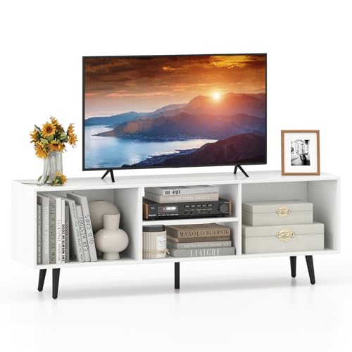 Multigot TV Stand Cabinet for 55 Inch TVs, Wooden TV Unit Console Table with Open Compartments, Storage Shelves & 5 Metal Legs, Home Media Entertainment Center for Living Room Bedroom (White)