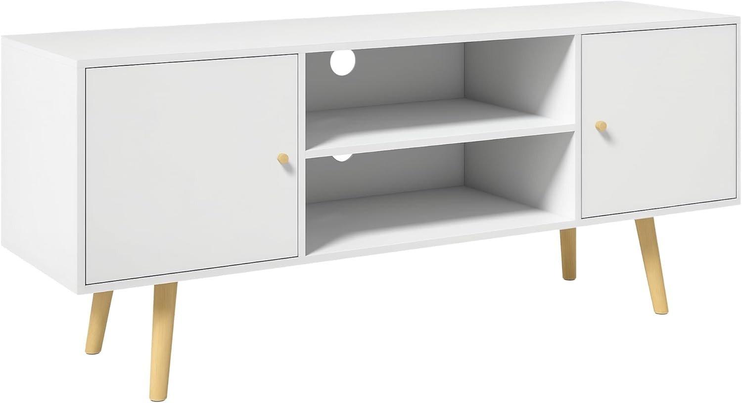 Mid Century TV Stand Entertainment Unit with 2 Doors Shelves Cable Holes 55 Inch