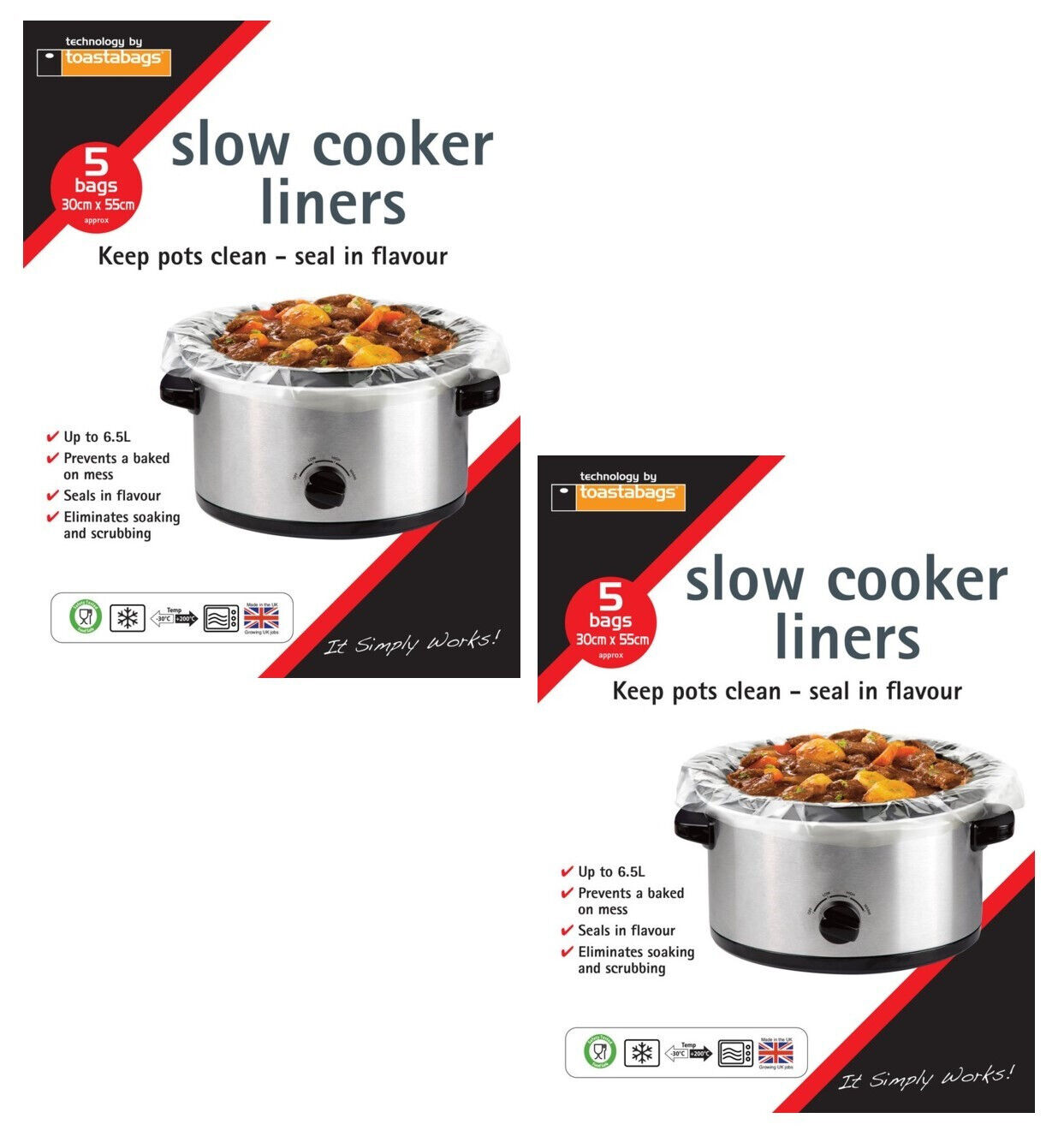 Toastabags Slow Cooker Liners 30 x 55cm 5 Bags Up To 6.5L Keeps Pots Clean