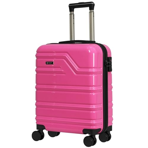Flymax 55x40x20 4 Wheel Super Lightweight Cabin Luggage Suitcase Hand Carry on Flight Travel Bags Approved On Board Fits Easyjet Ryanair Jet 2 BA Pink