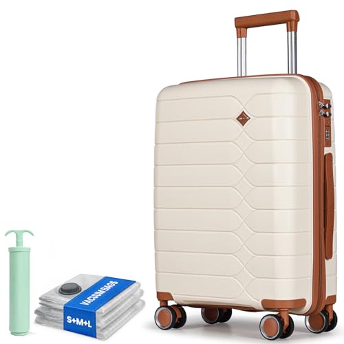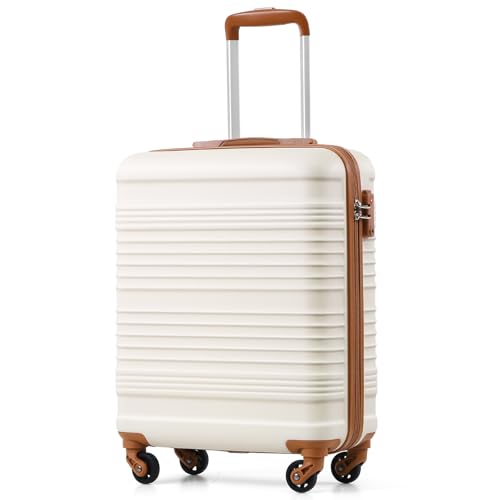 Ruausine 20-Inch Carry on Luggage, 55x40x20cm Cabin Suitcase with 4 Spinner Wheels & TSA Lock, Hardshell Lightweight Travel Suitcase, Small Rolling Luggage(Begie, 20 Inch)