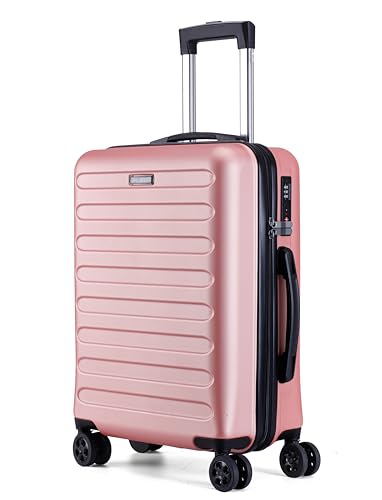 FLIEE Cabin Suitcase Hard Shell | 55x40x20cm Cabin Luggage | Lightweight Suitcase | Aluminum Telescopic Handle | TSA 3 Digit Combination Lock | 4 Dual Spinner Wheels. (Rose Gold, Cabin 20'')