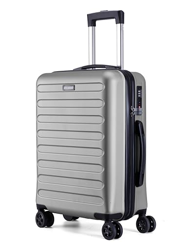 Ruausine 20-Inch Carry on Luggage, 55x40x20cm Cabin Suitcase with 4 Spinner Wheels & TSA Lock, Hardshell Lightweight Travel Suitcase, Small Rolling Luggage (Silver, 20 Inch)