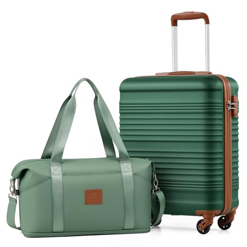 CELIMS - 2 Piece Luggage Sets | Cabin Suitcase + Large Suitcase | 55x40x20cm Cabin Luggage + Large Suitcase 4 Wheels Lightweight | Suitcase Set | Dark Green