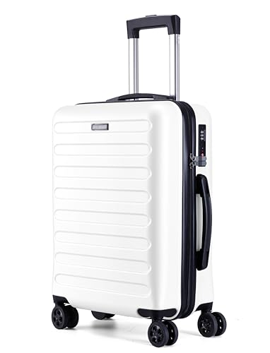 FLIEE Cabin Suitcase Hard Shell | 55x40x20cm Cabin Luggage | Lightweight Suitcase | Aluminum Telescopic Handle | TSA 3 Digit Combination Lock | 4 Dual Spinner Wheels (White, Cabin 20'')