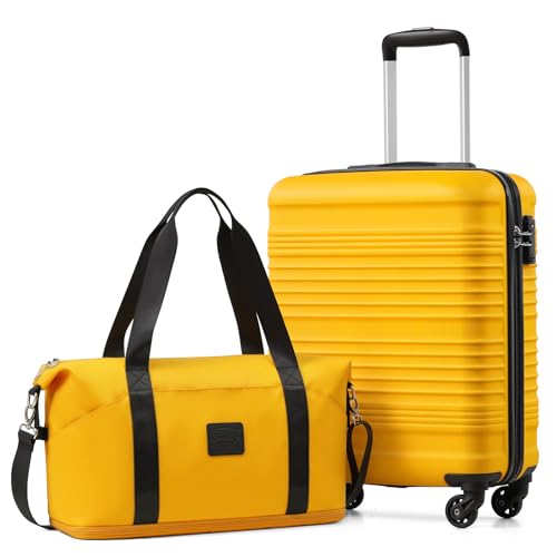 FLIEE Cabin Suitcase Hard Shell | 55x40x20cm Cabin Luggage | Lightweight Suitcase | Aluminum Telescopic Handle | TSA 3 Digit Combination Lock | 4 Dual Spinner Wheels. (Yellow, Cabin 20")
