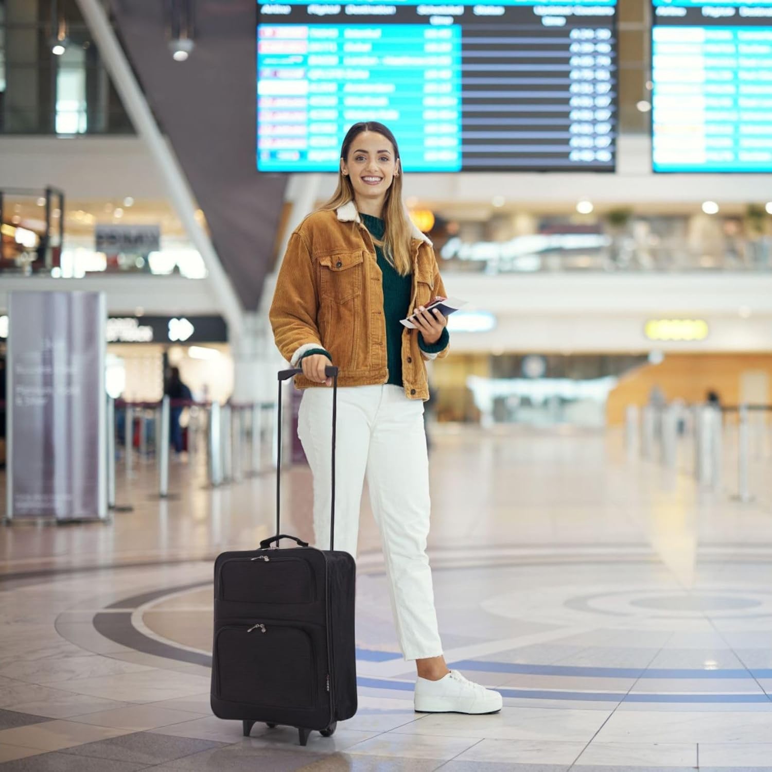 Luggage 55x40x20cm Cabin Suitcase Super Lightweight Small Suitcase Approved for 100+ Airlines Including EasyJet, Ryanair, British Airways & Virgin Atlantic (Black)