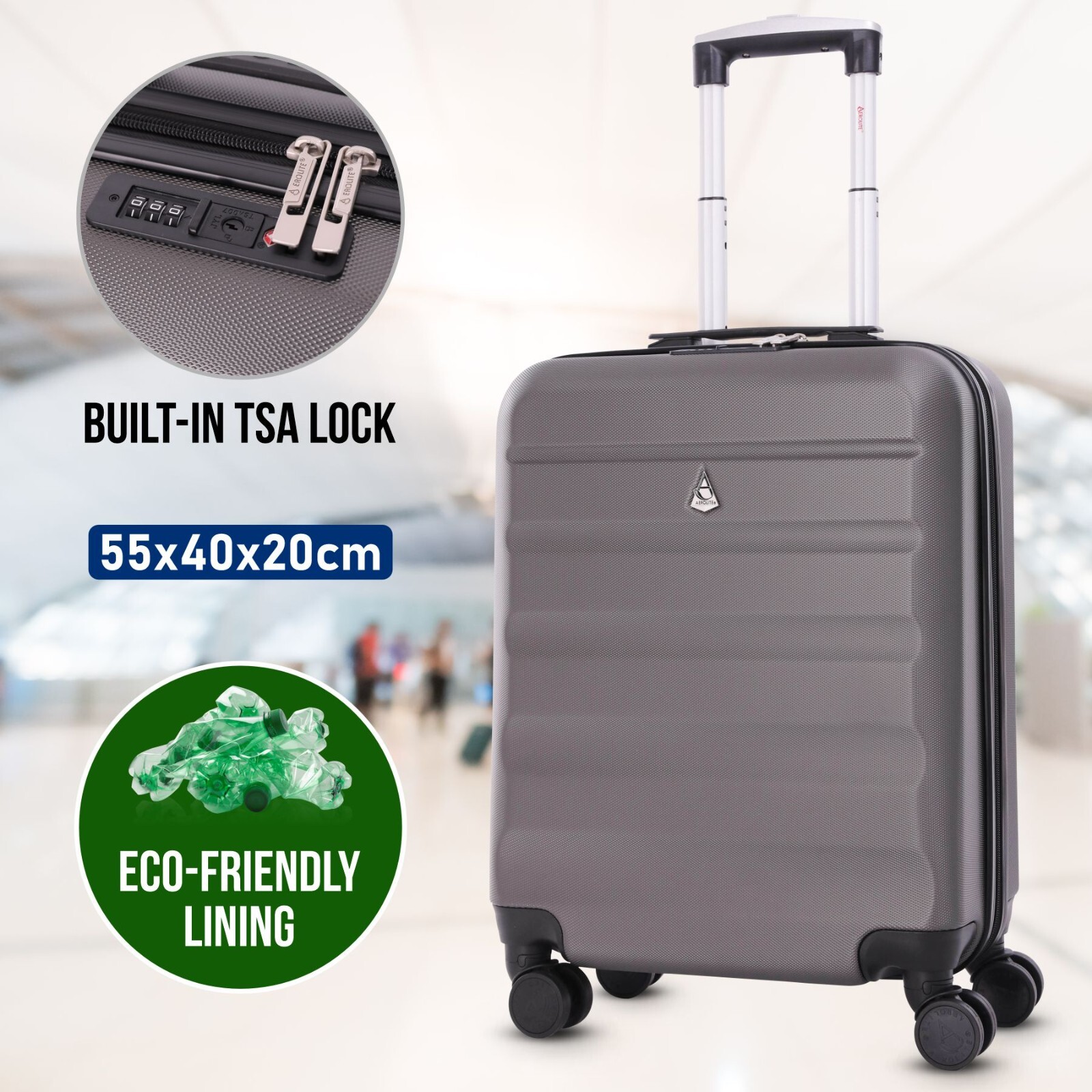 Seville Suitcase, 55x40x20cm, 4 Wheel Luggage Cabin Bags 3 Digit Lock Suitable for Ryanair, Easyjet, Jet 2 Paid Carry On