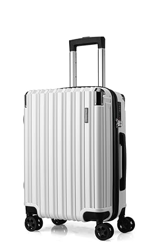 FLIEE Cabin Suitcase Hard Shell | 55x40x20cm Cabin Luggage | Lightweight Suitcase | Aluminum Telescopic Handle | TSA 3 Digit Combination Lock | 4 Dual Spinner Wheels. (White, Cabin 20")