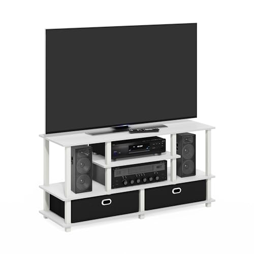 Furinno Large Stand for up to 55-Inch TV with Storage Bin, Engineered Wood, White/White/Black, 120.9(W) x 57.9(H) x 39.6(D) cm