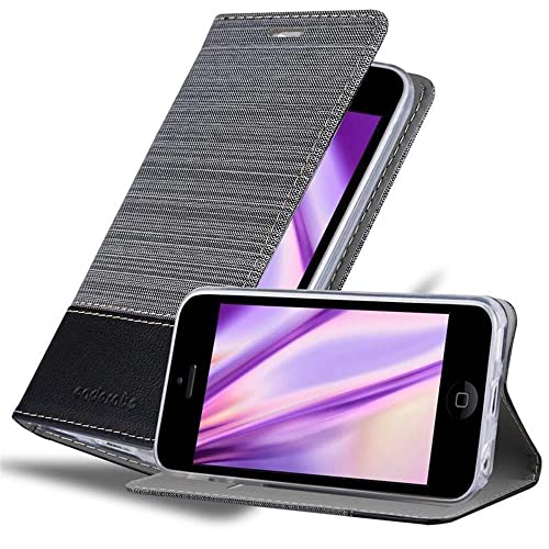 cadorabo Book Case works with Apple iPhone 5C in GREY BLACK - with Magnetic Closure, Stand Function and Card Slot - Wallet Etui Cover Pouch PU Leather Flip
