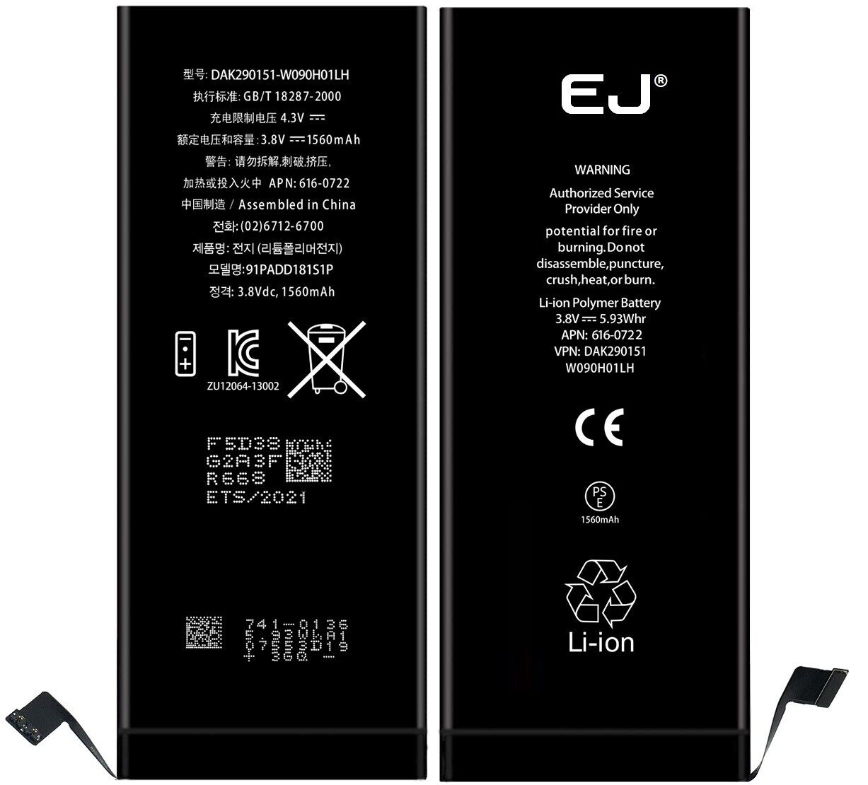 GENUINE EJ® REPLACEMENT BATTERY FOR APPLE iPHONE 5S 5C OEM 1560mAh