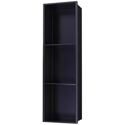 XAoSCd Stainless Steel Bathroom Niche, Shampoo Toiletry Storage Rack For Kitchen Living Room Bedroom, Embedded Book Organization Shelf For Office Residential,Black-28x90x12.5cm/11.02x35.43x4.92in