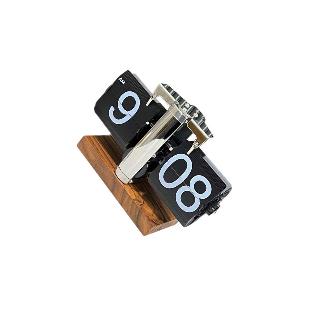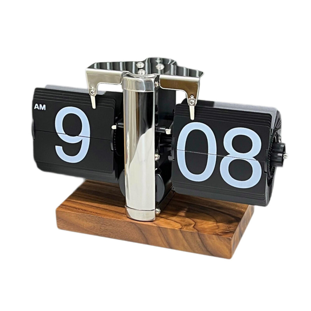 (Stainless Steel 12h, 24x13x15.5cm) Table Clock Multifunctional Wood Base Unique Flip Down Clock Automatic