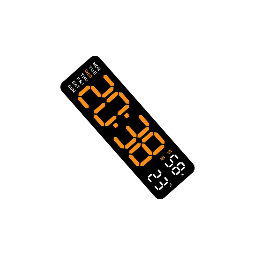 (orange light black, 22.8x3.5x7.5cm) Digital Wall Clock Adjustable Brightness Humidity Week Display Table