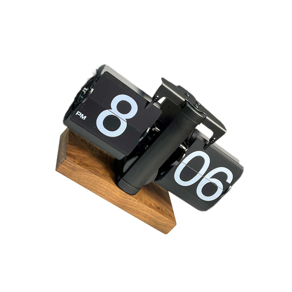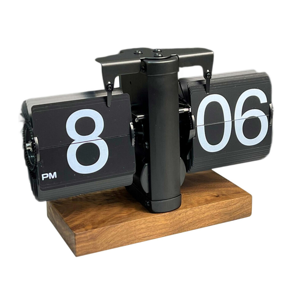 (All Black 12h, 24x13x15.5cm) Table Clock Multifunctional Wood Base Unique Flip Down Clock Automatic