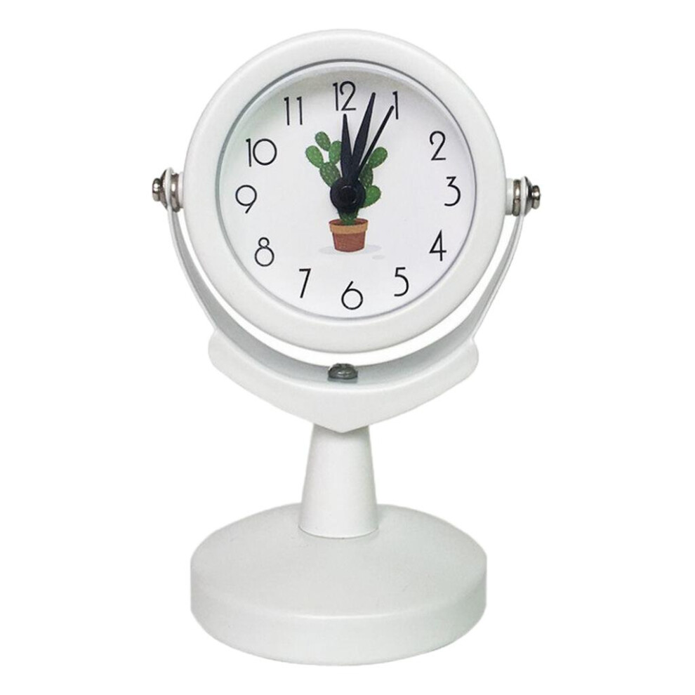 (White, 6x9.5cm) Rustic Quartz Table Clock With Silent Sweep Battery Power Students