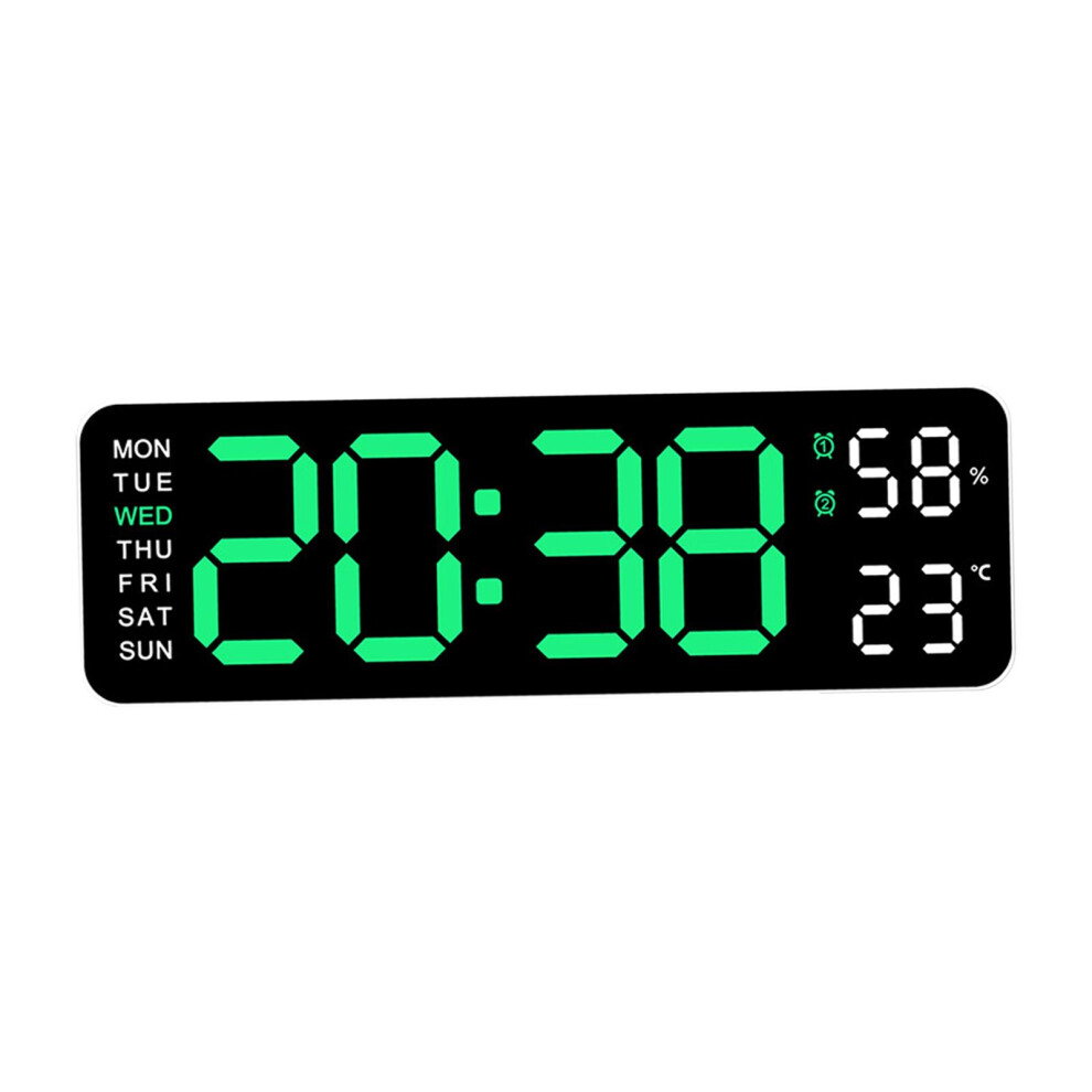 (green light white, 22.8x3.5x7.5cm) Digital Wall Clock Adjustable Brightness Humidity Week Display Table