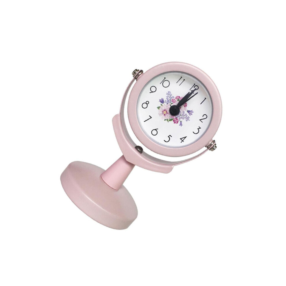 (Pink, 6x9.5cm) Rustic Quartz Table Clock With Silent Sweep Battery Power Students